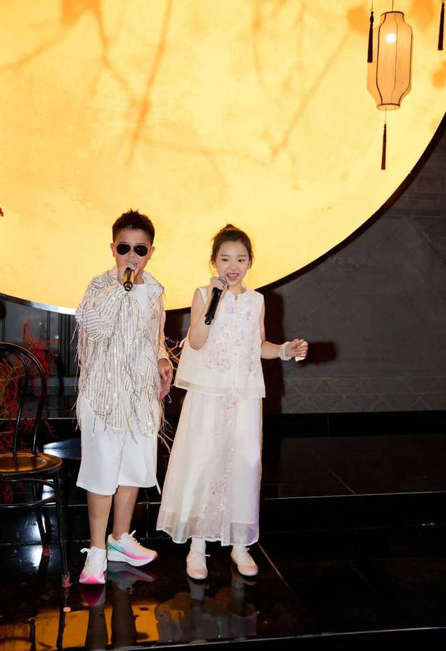 佟丽娅作为朵朵的母亲,9岁的朵朵戴着墨镜穿着一身银片修饰的白色上衣,还有点港剧中大哥的模样,在与董璇女儿小酒窝同台时与身边小酒窝站在一起又像知心大哥一样。